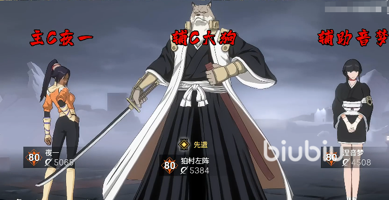 本套阵容采用双核心输出+双功能辅助的结构,角色配置为:主C四枫院夜一、副C狛村左阵(俗称“大狗”)、辅助位音梦。其中,音梦承担全队增益调度职能,是整套体系运转的基石;狛村左阵在获得音梦强化后,不仅能打出可观的区间伤害,还可有效削弱敌方打系抗性;而四枫院夜一则在多重增益叠加完毕后,进入万解状态完成最终爆发,实现伤害峰值的集中释放。