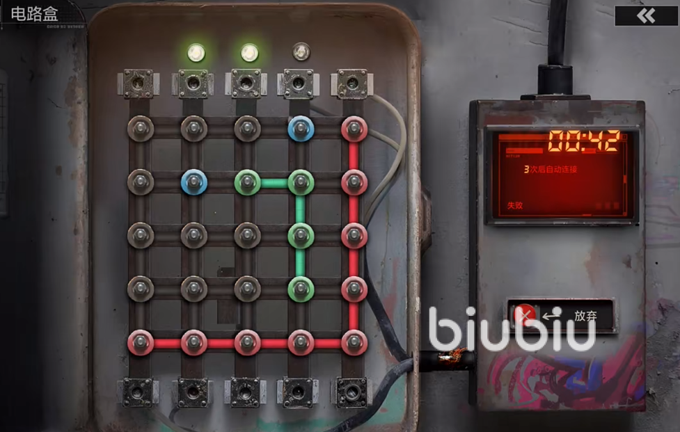 闸门开启后,进入室内一层可见散落箱体及基础补给物资。此时切勿停留搜刮,应立即沿楼梯直上二层。二楼中央设有主控电路盒,需完成颜色配对解谜:玩家须将同色端口通过连线路径正确连接,无交叉、无遗漏,成功后系统自动发放绿色权限卡(绿卡)。