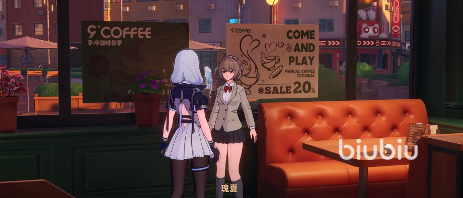 下一步目的地为【9°咖啡馆】,其建筑位于城市中心喷泉后方。进入店内后,需锁定身穿学生制服的角色【瑰夏】,与其交谈以推进任务进程。