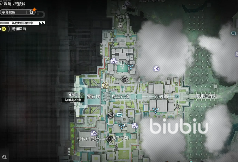 防御事件结束后,章节重心转向区域探索。武陵地图尺度较大,包含研究所主体建筑、环形城墙段落及多个受控安全区三类关键区域。研究所内可获取核心合成材料“源质结晶”,该道具为后续基建升级与装备强化所必需;城墙沿线散落着数据终端与能源模块,用于解锁基地新功能模块;安全区内则分布着线索信标,收集齐全后可激活全图传送锚点网络。