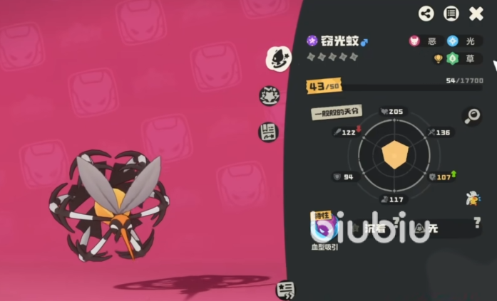 达成全部战斗条件后,嗜光嗡嗡将进化为窃光蚊。该形态强化了光能捕获能力,新增“视野拓展”功能,可在探索模式中主动扫描周边环境,标记隐藏材料点位。虽不支持骑乘,但其“血型吸引”特性在PVE与PVP场景中均具战术价值:当对手携带不同属性技能时,窃光蚊所释放的技能基础威力将随对方技能属性种类数线性提升(每多1种属性,增幅10%,上限30%)。