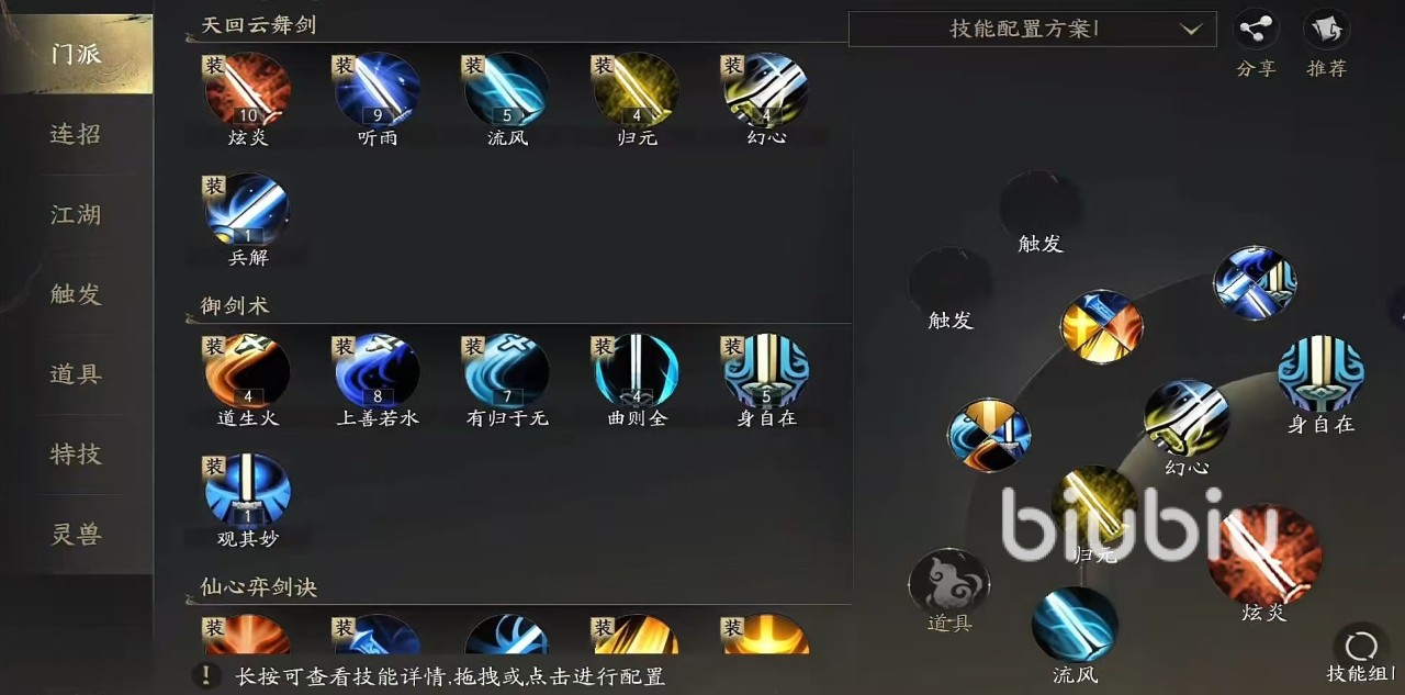 魍魉为高机动性近战刺客,拥有隐身潜行、瞬移突袭、爆发斩杀等完整暗杀链条,分属暗器、剑诀、轻功三大传承方向,操作上限高但防御属性偏低,强调精准时机把握与战场切入意识。翎羽山庄为低门槛远程射手,以弓箭远程打击为主,辅以机关陷阱布设能力,技能释放节奏平缓,新手友好度突出,适合偏好策略预判与安全输出环境的玩家。龙巫宫为复合型战斗职业,攻防数值均衡,兼具硬控技能、稳定持续输出与短CD爆发能力,并可通过特定技能为队友提供护盾、减伤、增伤等多重增益效果。荒火教为纯近战物理输出,技能设计聚焦力量堆叠与暴击转化,既可打造极限爆发流派,亦能通过生存向加点提升容错率与持续作战能力。