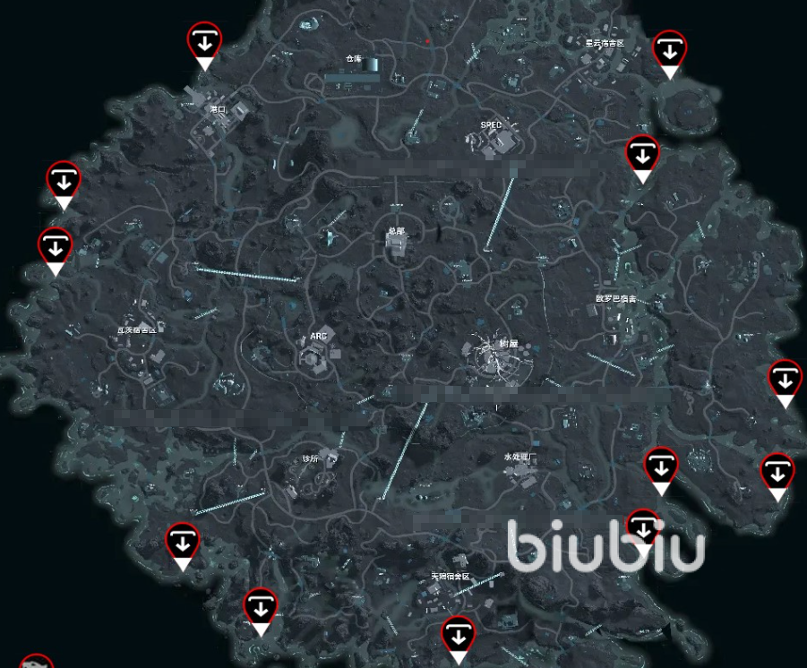 目前测试活动已上线,大家可提前玩到游戏内容,官方提供了8个出生点给大家选择,它们均匀分布在地图的周边区域,详细位置已经展示在下图当中,各位可以根据自己的规划路线以及目标选择最合适的一个,尽快搜索,先人一步才能占得先机。