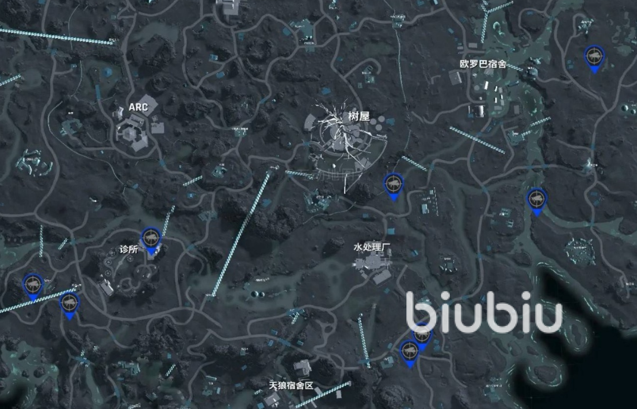 地图当中会有很多搜索点给大家获取物资,当然也设置了不少怪物等待各位的挑战,在野外区域有昆虫怪物,击杀之后可以随机掉落奖励,有概率得到珍贵物品。这些昆虫点位是比较多的,在水厂上下以及右侧分布了4个,各位跑图到这里时可以挑战,另外在诊所房区以及左侧区域,也有不少,顺手可以打了获取奖励。