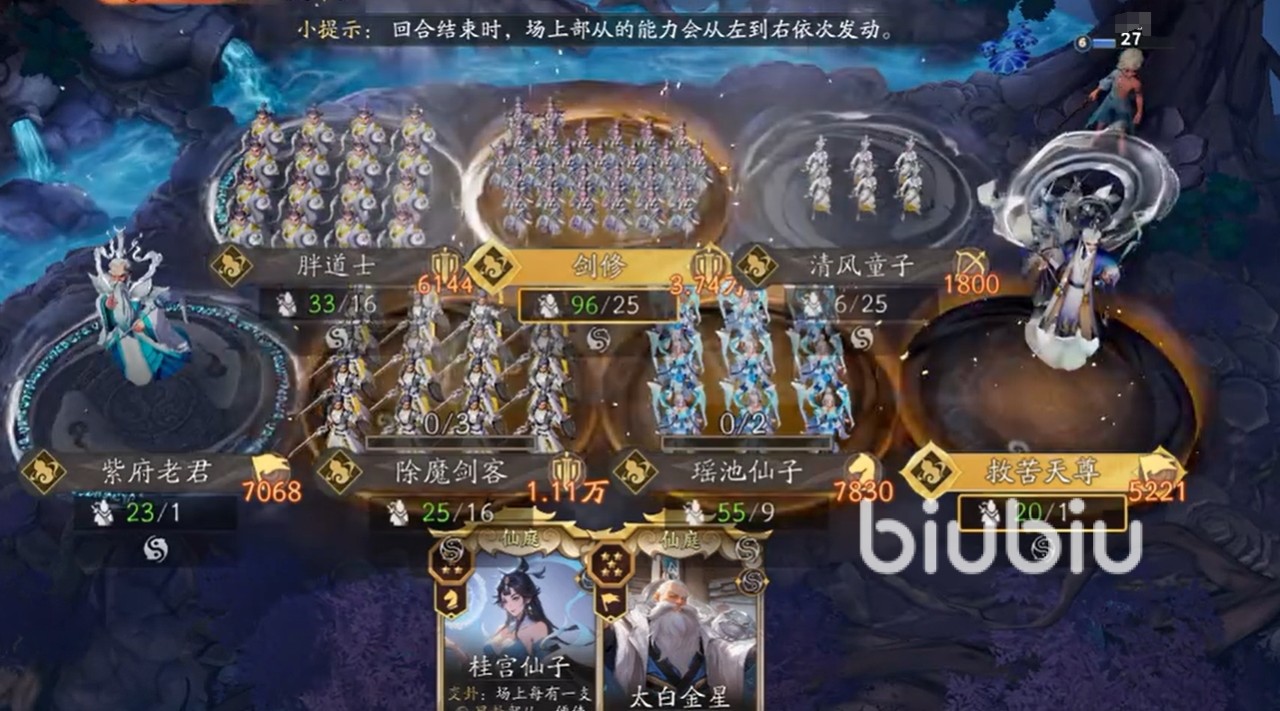 白卦流以灵石资源循环为驱动核心。起手依赖一星部从“杂役弟子”,其在白卦部从登场时稳定提供灵石;其余白卦单位则在灵石入账后触发增员效果,形成“灵石→部从→更多灵石”的正向反馈链。该流派前期节奏稳健,容错率高,尤其适合新手熟悉仙庭机制。中后期接入“地仙”与“紫府老君”后,部从生成效率显著跃升,玩家可灵活配置输出型或功能型部从,针对性强化队伍伤害或应对敌方特定阵容结构。