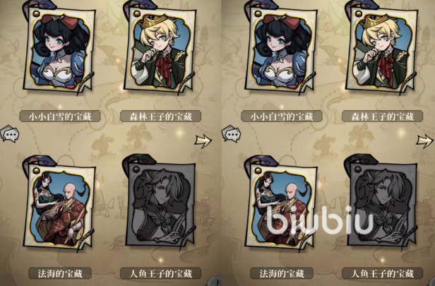 藏宝图采用主题化关卡结构,每张地图包含4个独立大关,如人鱼王子的宝藏、森林王子的宝藏、法海的宝藏等。每个大关下设10个递进式小关,整体难度平缓,侧重体验流畅性。每完成一个小关,系统即时发放金币与结晶;通关整张藏宝图(即4个大关)后,奖励层级提升,新增钻石、史诗碎片及蛇牙等高价值道具。其中,钻石可用于购买副本挑战次数,史诗碎片是合成高阶角色的核心材料,蛇牙则专用于兑换稀有装备,相当于持续获取免费进阶资源包,综合性价比突出。