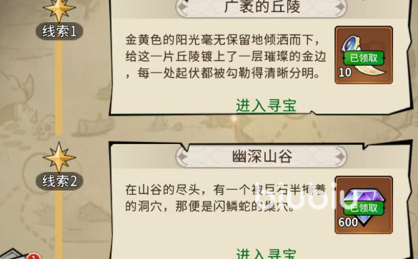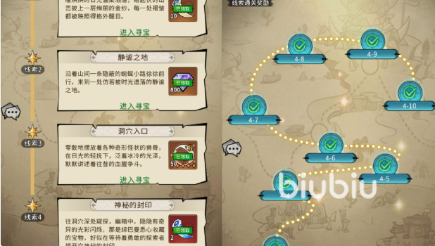 关卡设计融入轻叙事元素,例如“暖烘烘的日光温柔洒落,散落地摆放的奇形怪状兽骨”等线索式描述,兼顾探索趣味与剧情代入感,节奏轻松解压。该玩法不消耗体力,每日上线后建议优先清空当日所有可通关关卡——小关奖励实时到账,大关通关奖励需手动领取,逾期不补。随着主线进度推进,更多主题藏宝图将陆续解锁,奖励类型持续扩展,长期坚持可沉淀海量基础资源,大幅降低后期角色培养对钻石的依赖。