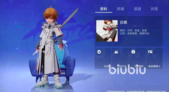 白歌身着素雅长衫,手持一柄修长佩剑,人物设定融合文学修养、美食鉴赏与行旅精神,整体气质兼具侠气与文韵,是对李白“诗酒剑三绝”内核的现代演绎。