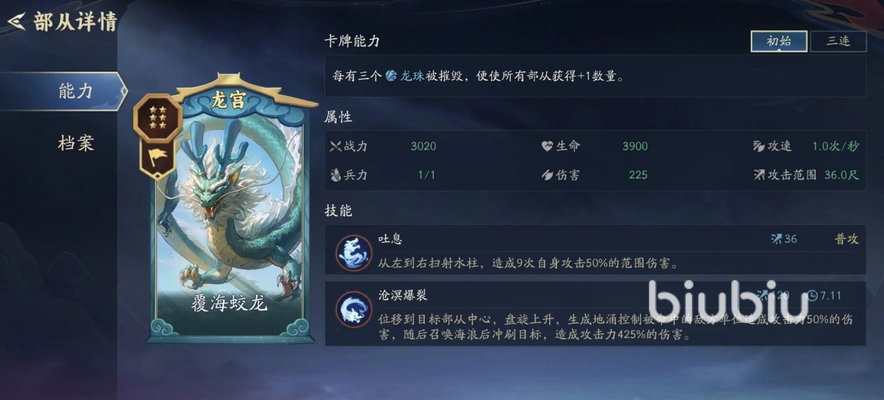该流派以稳定输出和战力滚雪球为特点,核心在于放大“回合结束”类效果的触发频次。六星部从【四海龙王】拥有全游唯一的“使所有部从的回合结束效果发动两次”特性,是射手流不可替代的引擎。搭配一星【蚌珠精】、四星【泣珠鲛女】、六星【珠泪天女】,即可组成基础四人射手阵型。前期建议优先获取蚌珠精等低星优质过渡卡,加速天书升至六级;此后集中搜寻四海龙王及三张射手部从,越早集齐越能提前启动多段增益。后期可补入六星中立【朱雀】、六星中立【玄武】强化生存与输出,再添一星龙宫【蟹甲士】作为前排承伤单位,提升整体容错率。