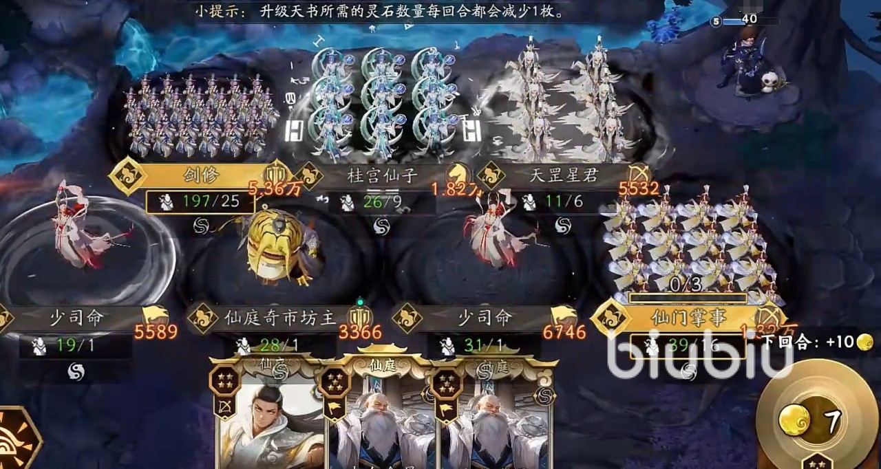 仙庭流派选择多样,但变卦流最为直观高效。通过少司命作为主C承接变卦层数,叠加战力后由天罡星君完成高额伤害转化。由于提供变卦效果的部从数量充足,实际组队过程中无需拘泥固定卡组,可根据对局情况灵活调整辅助单位,整体适配性强、泛用度高。