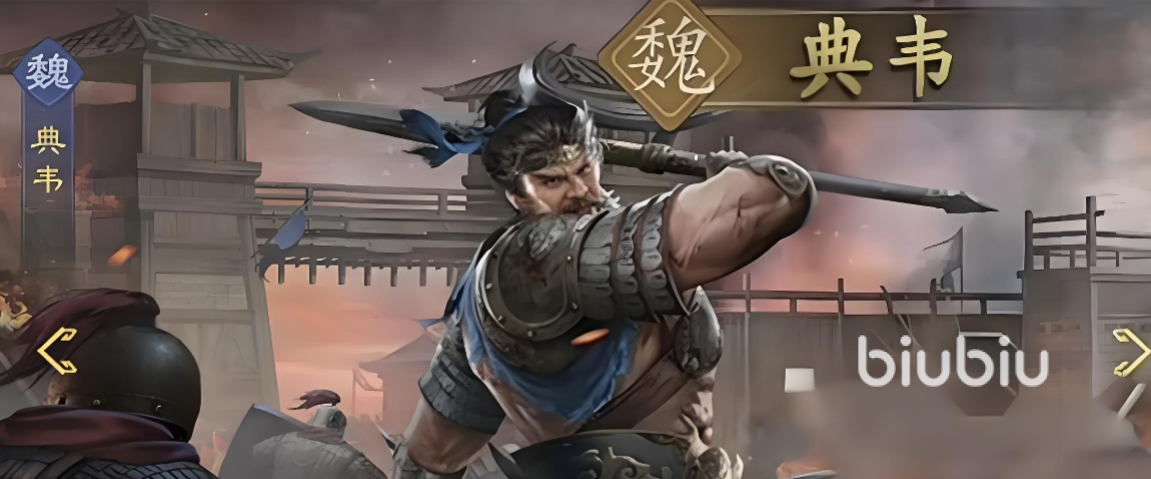 霸王盾阵容严格限定使用盾兵职业武将,核心三人组为曹操、许褚、典韦。其中典韦担任主输出位,站位前排中央;许褚为副输出兼前排压制者,通常位于典韦侧翼;曹操则部署于后排,专注提供群体减伤、战中治疗及属性增益,形成攻防一体的战术闭环。