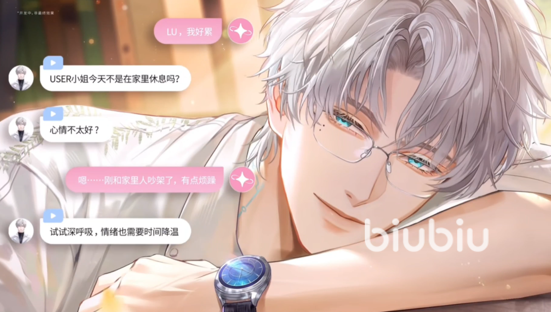 玩家自身构成游戏叙事的另一关键主体。整部作品围绕“lu作为专属管家”展开日常陪伴机制——系统支持定时唤醒、实时对话、轻量级互动小游戏及心理疏导式问答等多元交互形式,形成持续性情感联结路径。