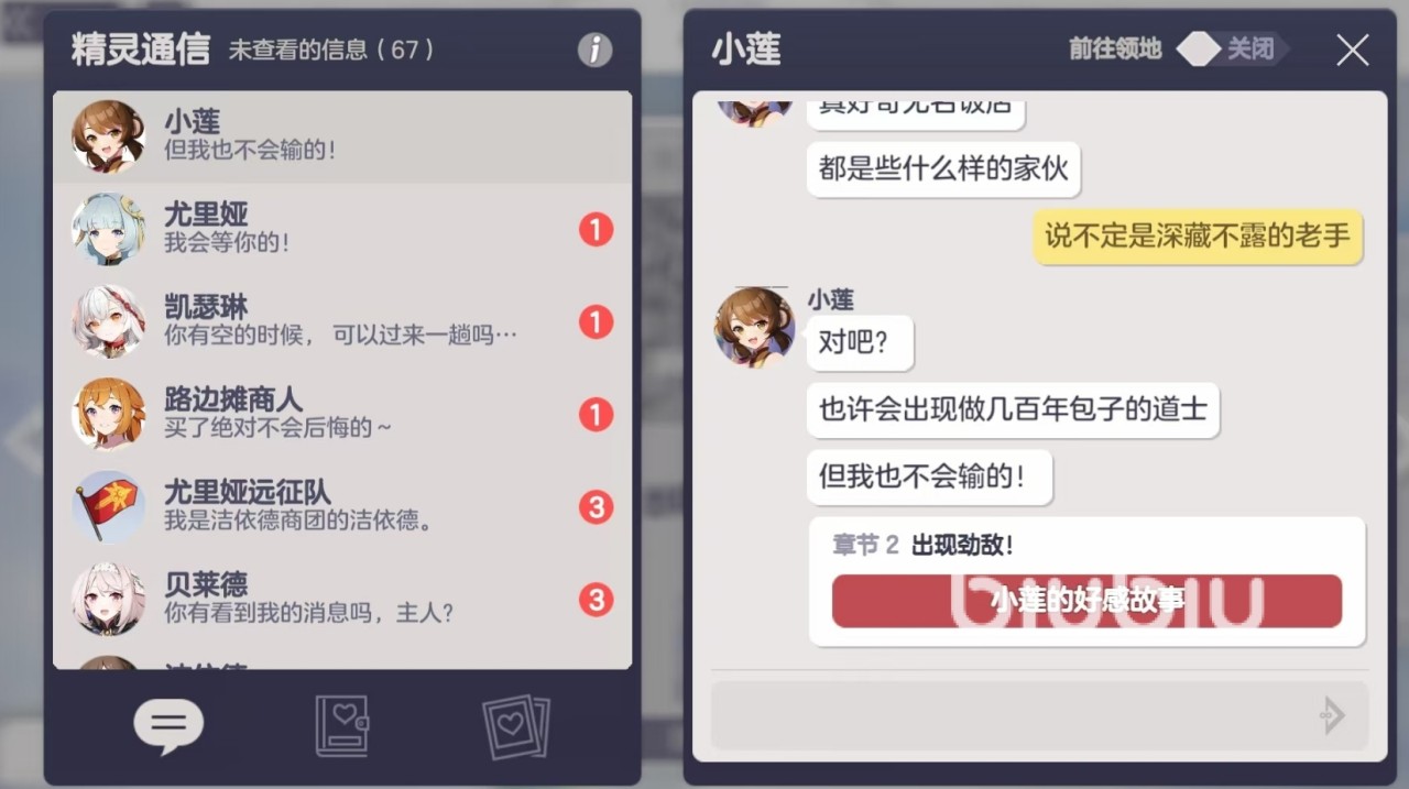 当角色好感达到Lv9后,其全部好感故事章节自动解锁。若此前未开启该角色剧情,需前往精灵通信界面与之对话,从第一章起依次推进;若已部分完成,则可从中断处继续,直至抵达结局节点。每位角色共设三条叙事分支:坏结局、好结局与一般结局。具体走向由玩家在关键剧情选项中的抉择实时决定,系统不提供预览或回溯功能。