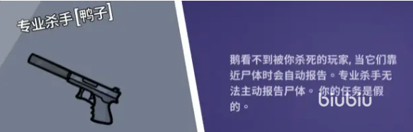 专业杀手具备独特的尸体交互机制:靠近任意尸体将自动触发报警,但击杀加拿大鹅后该机制失效。这一特性使其能优先锁定加拿大鹅达成“静默击杀”,随后冒充其身份混入好人队伍。实操建议选择监控盲区或地形遮蔽点实施行动,无需刻意藏匿尸体——利用系统自动报警制造信息迷雾,诱导好人误判真凶归属,提升自身生存周期。
