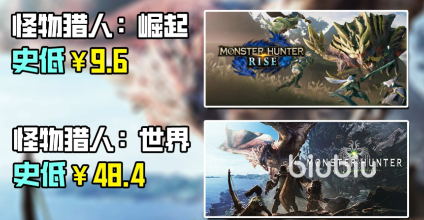 崛起以及世界这两部分别打到了史低9.6元以及48.4元,内容包含动作战斗,武器搭配,bd建设,怪物收集以及大厅社交等等,内容丰富,购买也很划算。