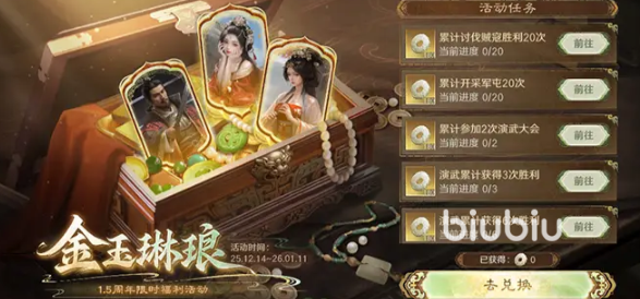 本次周年庆特别邀请知名演员吴镇宇担任品牌代言人,强化活动传播声量。核心玩法层面,首推“金玉琳琅”主题限时活动。该活动设有明确准入门槛——需主公城池繁荣度达到8000以上方可解锁。活动期间开放多阶段限时任务,完成即可获得限定道具“玉石”,该道具可在专属商店“琳琅阁”中兑换指定外观造型或实用养成资源。