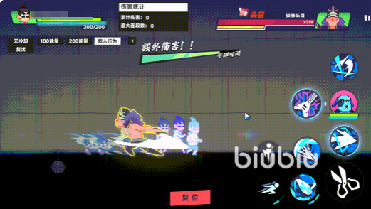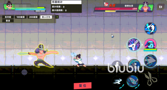 角色基础动作框架统一包含:普通攻击、两个小技能、一个大招、移动、跳跃及闪避。其中普攻连段因角色而异——汪疯为三段式连击,伍六七则为四段式连击,合理衔接可显著提升打击流畅度。小技能设有冷却时间,需注意循环使用节奏;大招不仅依赖CD恢复,还需积攒气力值:可通过自然恢复或命中敌人加速充能,视觉反馈清晰直观。
