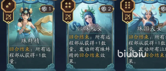龙宫势力卡牌数量丰富,但并非所有组合都适合新手开局。综合测试数据与实战反馈,推荐采用以「珠蚌精」「泣珠鲛女」「珠泪天女」为核心构建的初始阵容。这三张角色卡构成闭环式成长链:任意一张触发效果后,可联动激活其余两张,进而形成持续性、可叠加的全体属性增益,覆盖龙宫全系单位。