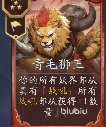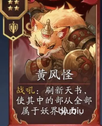 该体系以黄风怪为战术支点:其战吼效果可刷新天书并锁定妖族卡组,是整套阵容检索与稳定性的源头。开局建议保留一张黄风怪用于持续抽滤体系卡,其余非关键卡可及时替换以优化手牌资源。金翅大鹏承担经济引擎职能——每回合开始时,根据场上金翅大鹏数量提供固定灵石,构成中后期运转的底层保障。青毛狮王则作为泛用性核心,赋予全体友方单位战后技能加成,显著提升队伍成长上限与技能覆盖率,在阵容成型过程中不可替代。