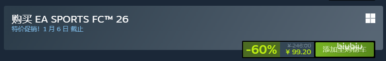 聚焦核心问题,FC26标准版steam国区的首发价格是248元,近期开始的冬季促销活动史低仅99元,这个价格比起首发价已经堪称腰斩,是入手的最佳时机,需要提醒的是游戏的价格会随着平台的促销活动变化,目前没有公开的消息显示游戏的价格会低于99元,打算入手的玩家一定要关注本站或者steam平台的最新优惠信息,以免错失良机。