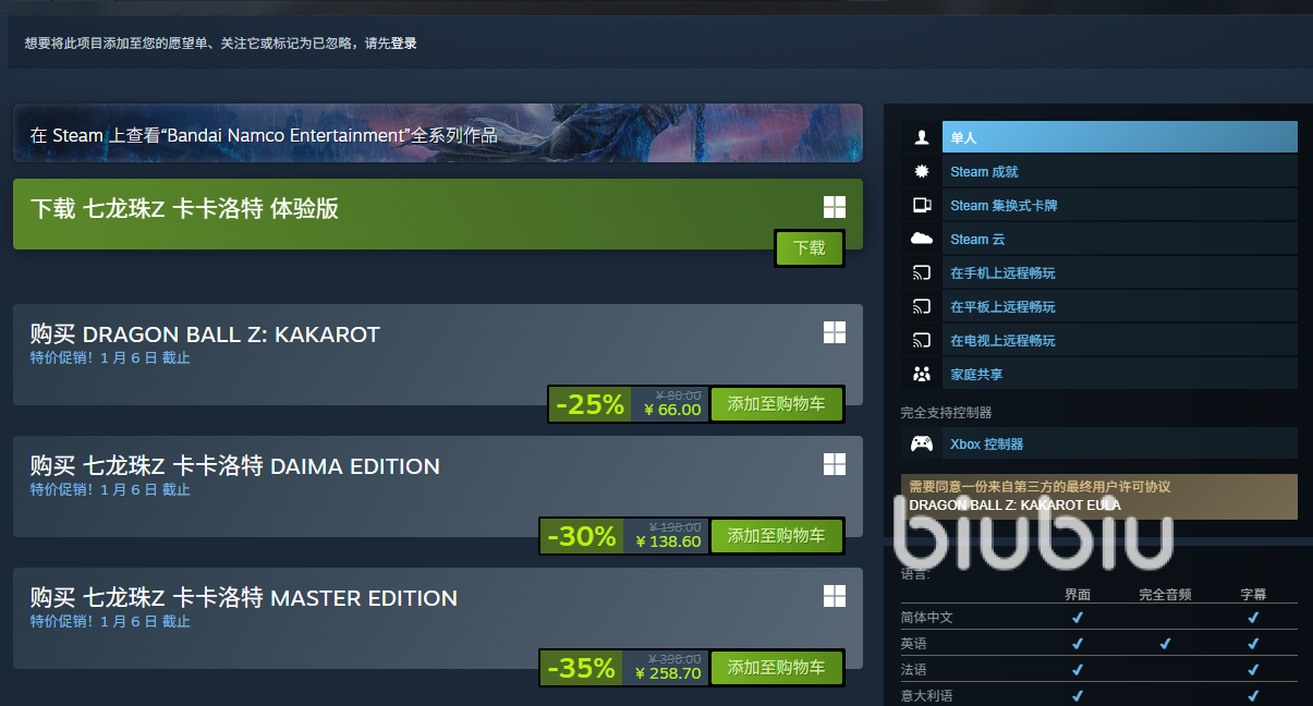 七龙珠Z卡卡罗特史低多少钱 七龙珠Z卡卡罗特冬促价格多少钱