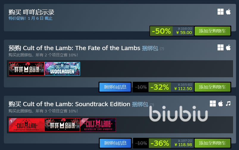 所以咩咩羊启示录史低多少钱的问题,大家现在应该也知道了,冬促59元与此前的史低价格持平,大家赶紧购买游戏吧,游戏当前的热度还是不错的,最后还是给大家提个醒,想更快的把游戏下载好,或者游戏有更好的网络来玩,不想被各种网络因素困扰,先安装biubiu加速器绝对是最好的方法。