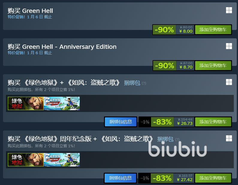 绿色地狱史低多少钱 绿色地狱冬促价格多少