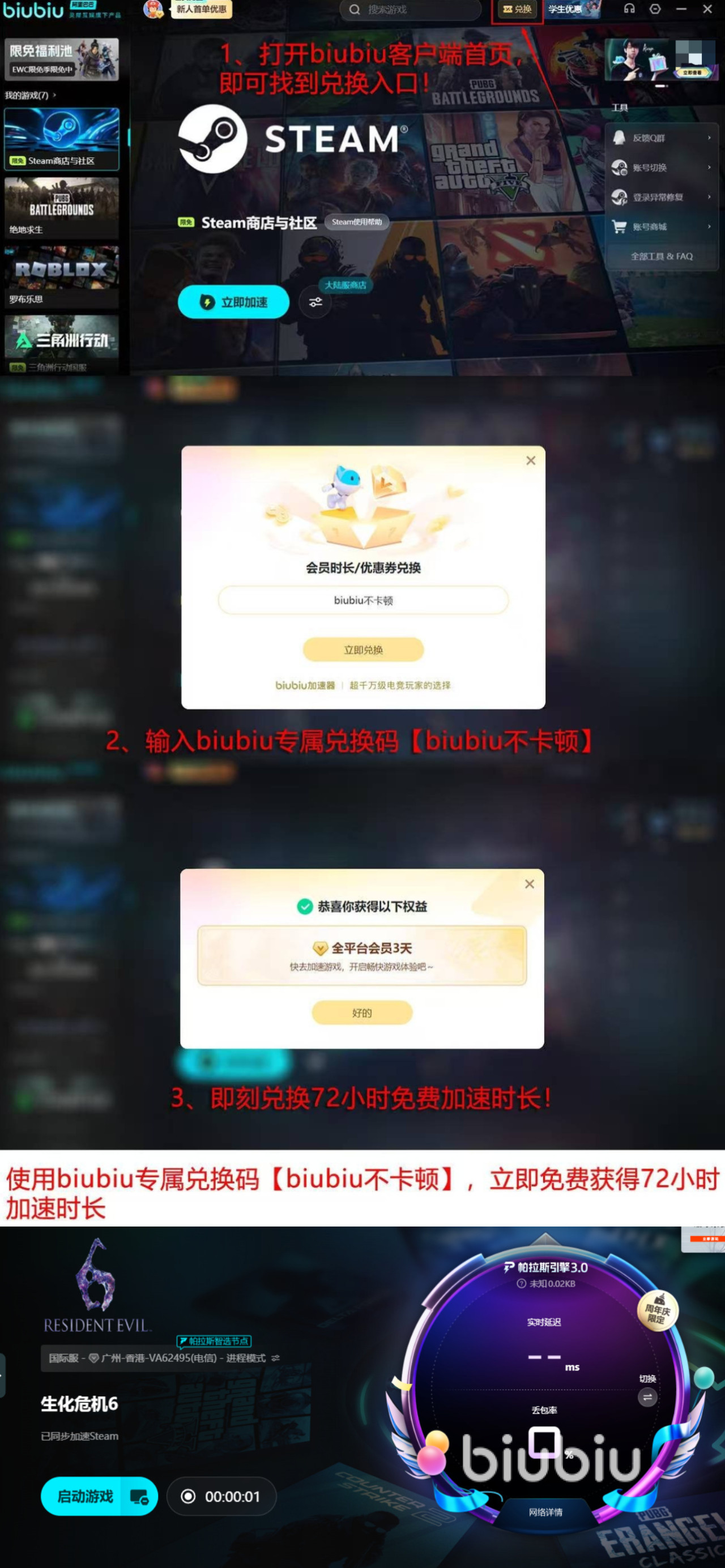 平台针对新人还提供了不少好处,比如初次登陆的玩家可以得到24小时体验机会,同时应用给所有人还提供了三天体验机会,不过需要大家自行在休闲时间内,在指定的区域内通过口令【biubiu不卡顿】换到手。最近还有限免提速活动,冬促期间的12月18日至1月18日大家都可以提速超多对象,可在限免池当中搜索。像steam和epic这类游戏商店平台都长时间提供免费提速服务,小伙伴们可以长期使用,快速下载超多作品。