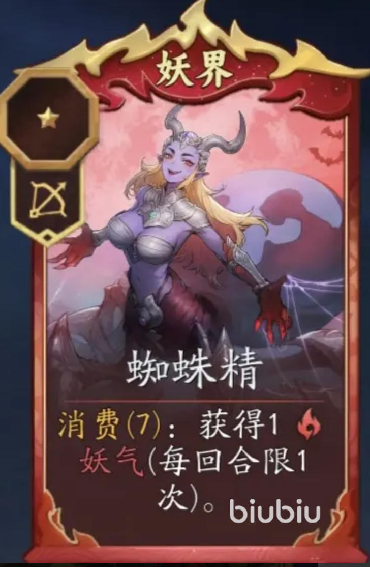 该流派的起手关键在于高效开局——利用三枚骰子优先刷出蜘蛛精。该卡拥有专属技能:“每回合限1次,消耗7点灵力获得16点妖气”。这一稳定资源转化能力,使玩家能在前中期快速积攒妖气,为升本与关键卡牌登场争取时间窗口。蜘蛛精获取成本低、生效快,是整套消费体系最可靠的第一块基石,有效缓解新手期常见的资源断档与血量压力。