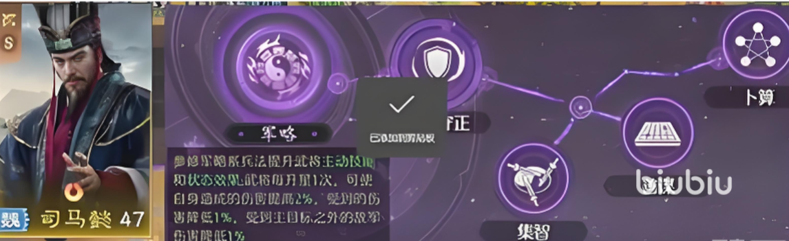 司马懿定位为副输出兼毒系补充者,推荐战法配置为【蚀骨】与【借尸还魂】。需特别注意:【侵蚀】虽具毒伤潜力,但其冷却时间过长,难以实现毒状态的连续覆盖,故不建议选用;若角色尚未解锁上述技能,可暂以【鼓角齐鸣】替代,兼顾增益与节奏控制。
