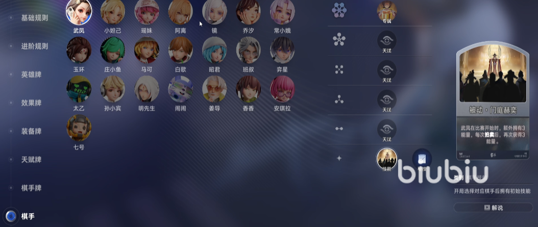 另一项专属能力“狂欢时刻”则聚焦天赋成长路径:成功触发后将获得1张“打成一片”效果牌,并解锁一个三选一的战术型天赋选项。该天赋需棋手等级达标后方可激活,强调阶段性资源规划与战局节奏把控。