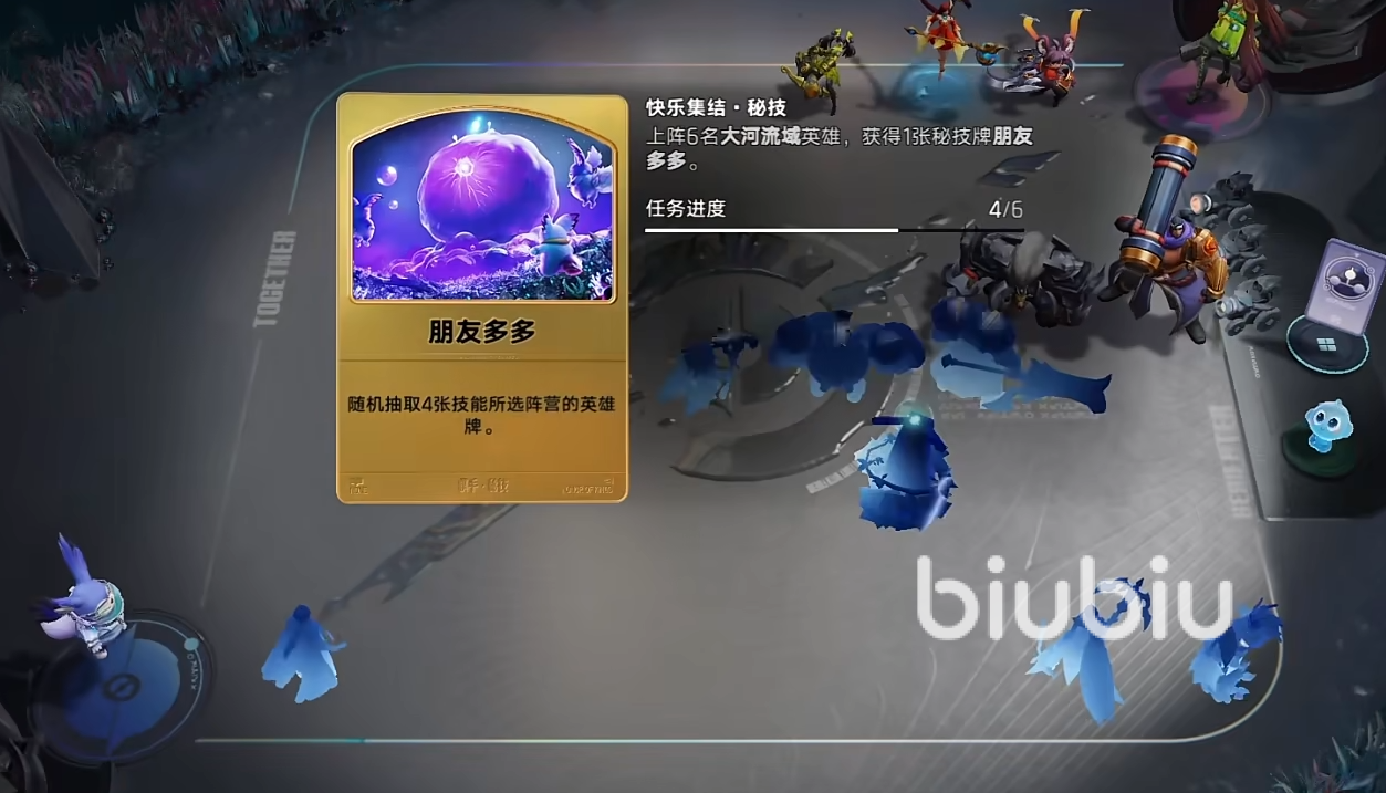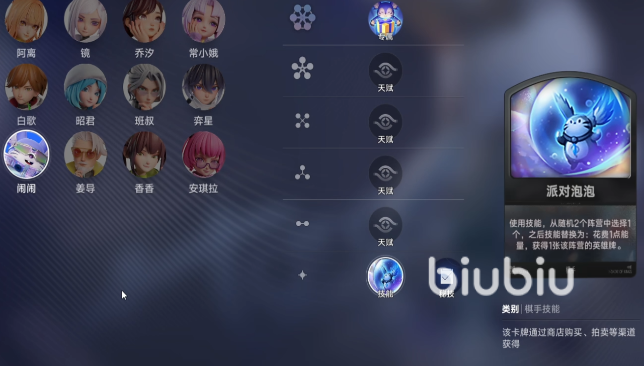 闹闹的战术价值集中体现在“泡泡派对”主动技能与“欢乐集结”“狂欢时刻”两大秘技的协同运作中。“泡泡派对”采用动态阵营适配机制:释放时系统随机生成两个可选阵营,玩家需即时锁定其一,消耗对应能量后即可激活该阵营全部英雄卡牌效果。这一设计彻底摆脱传统棋手对预设阵容的路径依赖,使闹闹能依据实时卡池获取情况、敌方阵容构成及克制关系,灵活调整阵营方向,实现战局主导权的动态转移。