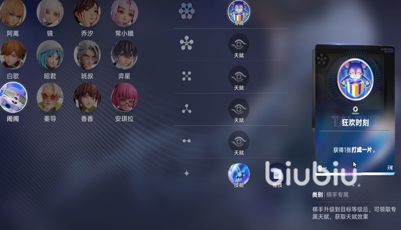 作为典型的阵营引导型策略棋手,闹闹不承担直接输出或承伤职能,核心定位是通过阵营定向调度与资源精准补给,为全队构建可持续增益体系。其中,“欢乐集结”需场上已部署6名同阵营英雄方可激活,成功触发后将获得秘技牌【朋友多多】,一次性抽取5张指定阵营英雄卡,显著提升中期阵营成型速度与关键英雄升星效率;“狂欢时刻”则需棋手达到指定等级解锁,激活后不仅提供基础属性加成,还可开启天赋三选一分支,进一步拓展战术纵深与应对弹性。