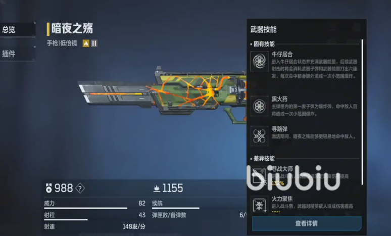 暗影之伤虽为手枪类武器,但其战术价值不容忽视。该枪虽射程有限、弹匣容量较小,却拥有两项关键特性:一是首发射击附带范围爆炸效果,显著提升起手压制力;二是全弹道精准度加成,大幅优化命中率,尤其利于近距离快速反应与精准击杀。