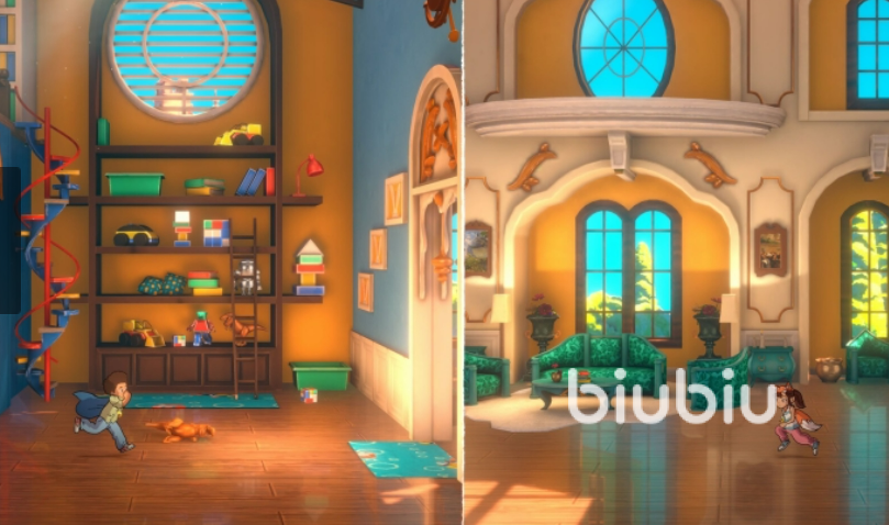 本作核心机制为双线并行解谜:两名主角始终处于不同空间坐标,彼此视野隔离但逻辑互通。单人游玩时需频繁切换视角,在脑内同步推演双方动作序列;双人合作模式下,玩家可分别操控角色,通过实时语音协调操作时序与空间响应。该设计显著提升了解谜维度——不仅考验观察力与逻辑链构建能力,更强化对空间关系、时间差与因果反馈的综合判断。
