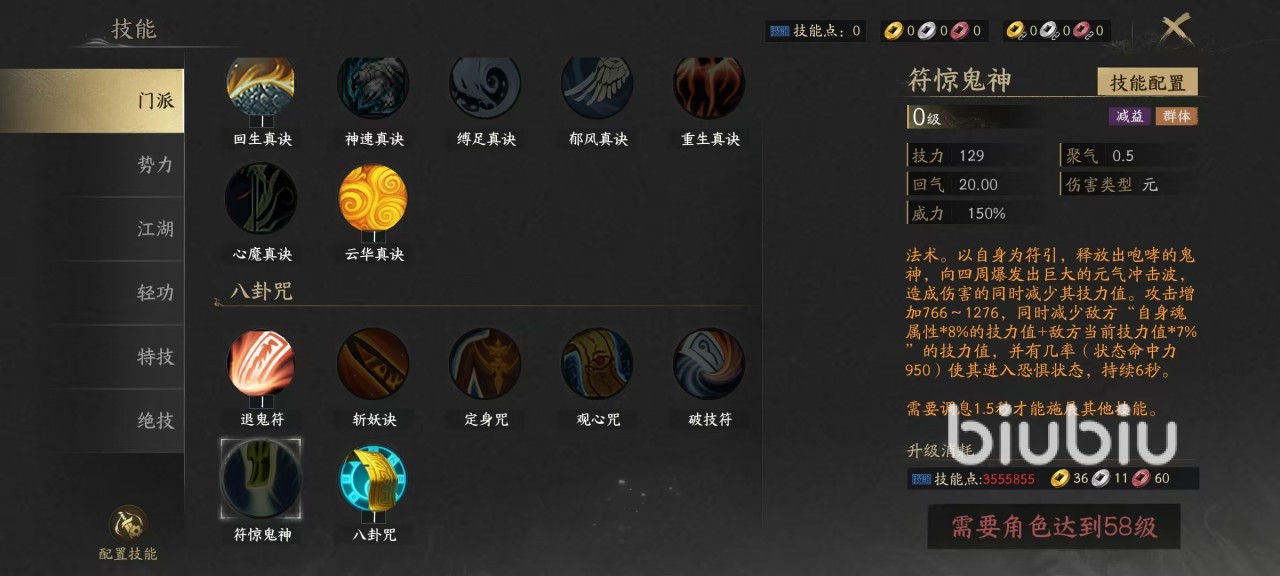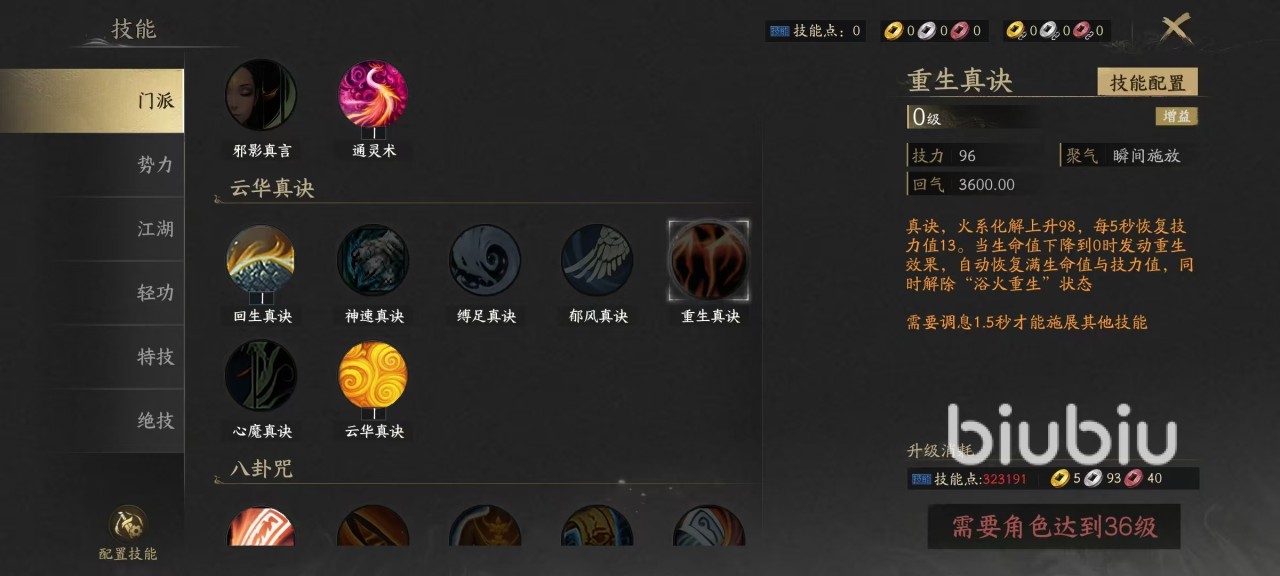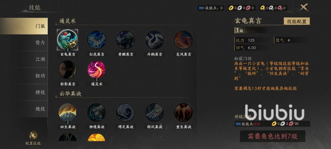 技能架构分为三大主干体系:通灵术、云华真诀与八卦咒。通灵术侧重召唤类技能,包含玄龟真言(提供护盾与减伤)、白虎真言(强化暴击与突进)、丹鹤真言(治疗与解控)等,对应玄龟、白虎、青麟、丹鹤四种灵兽,每种灵兽拥有差异化战斗定位;云华真诀聚焦增益效果,涵盖回生真诀(持续回血)、神算真诀(提升命中与闪避)、重生真诀(复活队友)、心魔真诀(降低敌方抗性)等;八卦咒则专精范围伤害,如顶级技能“符惊鬼神”,可对目标周围区域施加高额法术冲击波。所有技能随角色等级逐步解锁,实际搭配需结合CD管理与场景需求动态调整。