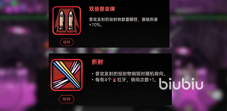 进入中后期,随着主线推进,基础代币需求激增,对跑图效率提出更高要求。此时推荐主力培养女枪角色“夜鸢”。该角色技能搭配具备高度稳定性,前期已获取的关键技能无需更换,仅需围绕其特性进行针对性强化。Boss战后掉落的独特护符中,夜鸢适配度最高的两项为:“双倍普攻弹”(提升投射物数量)与“折射”(增加弹道转向次数)。装备二者后,即使原地普攻亦能覆盖全屏,实现高覆盖率AOE输出。若再于强化房间获取“普攻弹增加”技能,将进一步放大其压制力。