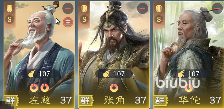 核心配置采用三盾兵体系:主将张角,副将左慈与华佗。该组合虽无传统意义上的高伤主力,却通过机制互补构建出稳定输出循环。张角作为主将具备可观的基础伤害,但面对高抗性目标时存在输出乏力问题;左慈则有效弥补此短板,其技能可为张角提供显著增伤加成,并触发“狂风暴雨”类场景技,释放二段高额伤害,形成双核输出结构。