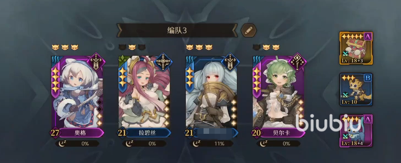 辅助位首选拉碧丝,其定位为功能性支援者:除提供稳定治疗外,还可叠加攻击增益与阶段性免伤效果,有效缓解长时间战斗中的资源压力与伤害波动。该角色成长曲线平缓,低星阶(三星至四星)即可发挥显著作用,适合新手玩家在资源有限阶段快速成型水队基础框架。
