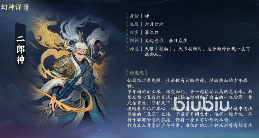 除四象神兽外,二郎神作为神话系幻神亦具备独特战略定位。其不提供直接战斗属性加成,而是激活“天书择阵”机制:大幅提升玩家从天书系统中抽取目标卡牌的概率。该能力可加速成型理想阵容组合,在资源有限的前期尤为关键。对于缺乏明确构筑思路的新手,二郎神能显著降低阵容成型难度,实现高效过渡与战力跃升。