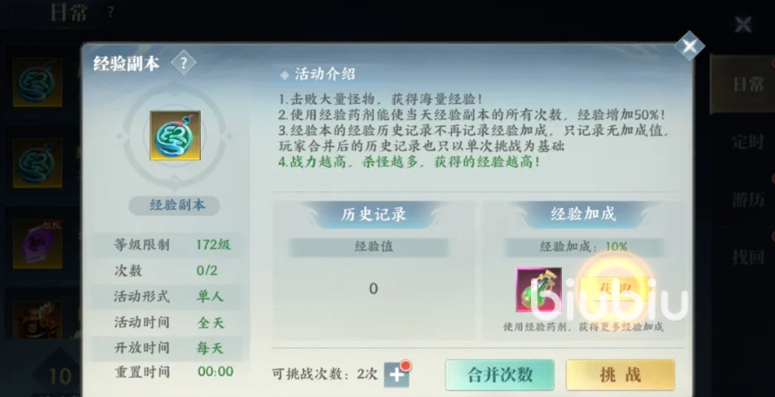 角色等级提升是前期最核心目标,主线任务虽提供稳定经验,但效率有限。建议优先投入日常经验副本——该玩法每日开放两次挑战机会,且0点准时重置次数,支持高频参与。副本采用全自动挂机机制,操作门槛低,战斗结果由角色战力直接决定:战力越高,单次通关耗时越短,经验结算总量越高。此外,副本经验收益设有基础加成机制,击杀数量越多,最终经验奖励增幅越明显。