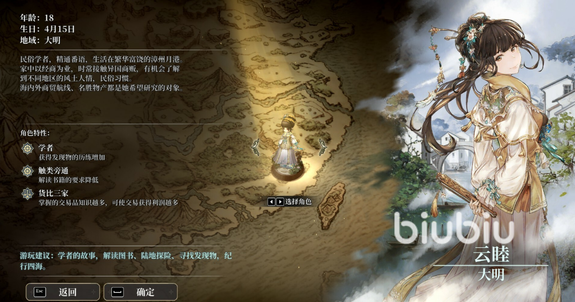 初入《风帆纪元》的玩家将置身于一个高度拟真的16世纪航海世界。游戏开局提供四位初始主角,每位角色拥有不可替代的成长路径与机制适配逻辑。例如大明阵营的云睦,定位为学者型领袖,其核心成长曲线围绕“见闻积累”展开——随着探索区域扩展与书籍研读数量提升,贸易利润率将阶梯式增长,强调长期规划与知识驱动型策略决策。