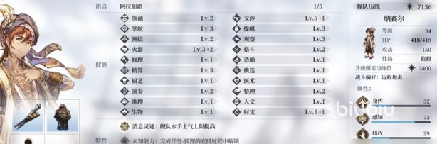 主线剧情是获取核心伙伴最稳定高效的途径。第一章通关后即可招募纳赛尔:交涉技能达5级,火器专精与超凡技能均处于三级水平,属全维度适配型人才。其活跃区域覆盖中东与非洲航线,在早期即可独立承担外交谈判、货物议价及突发战斗等多重任务;同时具备“提升舰队士气上限”的被动特性,成为中前期团队续航与稳定性的重要保障。第二章结尾加入的奥屋里,则是一名专业医疗人员,医术技能表现优异,可显著降低航行途中伤病减员率。