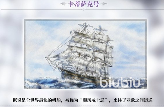 游戏中共提供四款可操作飞剪船,每艘均具备差异化性能特征。代表性船只为卡蒂萨克号——官方设定中全球航速最快的帆船,亦有“顺丰威士忌”之称,历史上专精茶叶与羊毛等高价值、易损货物运输,在游戏内延续其高速与稳定的双重标签。艾里尔号名称源自凯尔特语“小岛”,实测航速突出,航行中呈现典型贴水疾驰状态。其余活跃于远洋贸易线的飞剪运输船,则主要承担轻质、易腐类货物的快速转运任务。