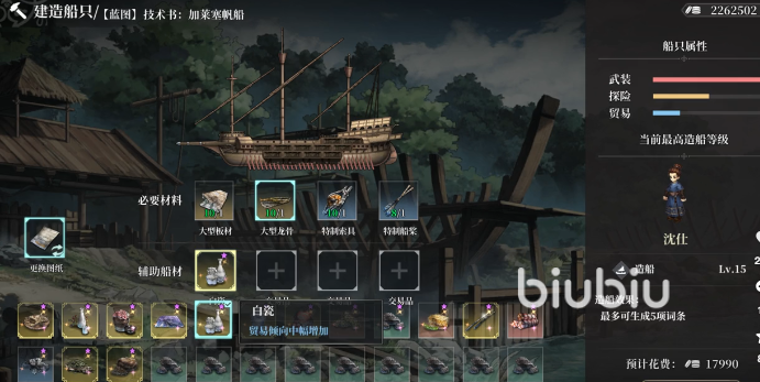 需注意,不同舰型对建材需求存在显著差异:单桅纵帆船侧重机动性,仅需“桅杆”“帆布”“龙骨”三类基础组件,适合新手快速成型;双桅横帆船兼顾航速与载货量,须额外补充通用型“板材”以强化结构冗余;而大型卡拉克帆船作为远洋商运主力,依赖“大型龙骨”与“桅杆”等高规格部件,采集路径更长、前置条件更严苛。