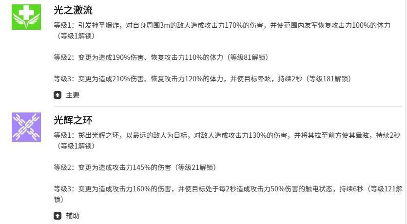 背景设定中,阿德里安沉睡于远古圣所,因世界再度面临大规模破坏势力侵袭而苏醒。其使命是维系秩序平衡,以光之力重构战场节奏。首项主动技能为【光之精灵】:释放后对半径3.5米内所有敌方单位造成7%基础伤害;若范围内存在我方角色,则同步为其恢复一定体力值。该技能伤害随等级提升而增强,是兼顾清场与续航的关键起手技。另一核心辅助技【光辉之环】则具备精准打击与强控特性——技能锁定距离最远的单体目标,造成130%高额伤害,并附加1秒眩晕+强制位移至前排效果,为队友创造理想集火窗口。