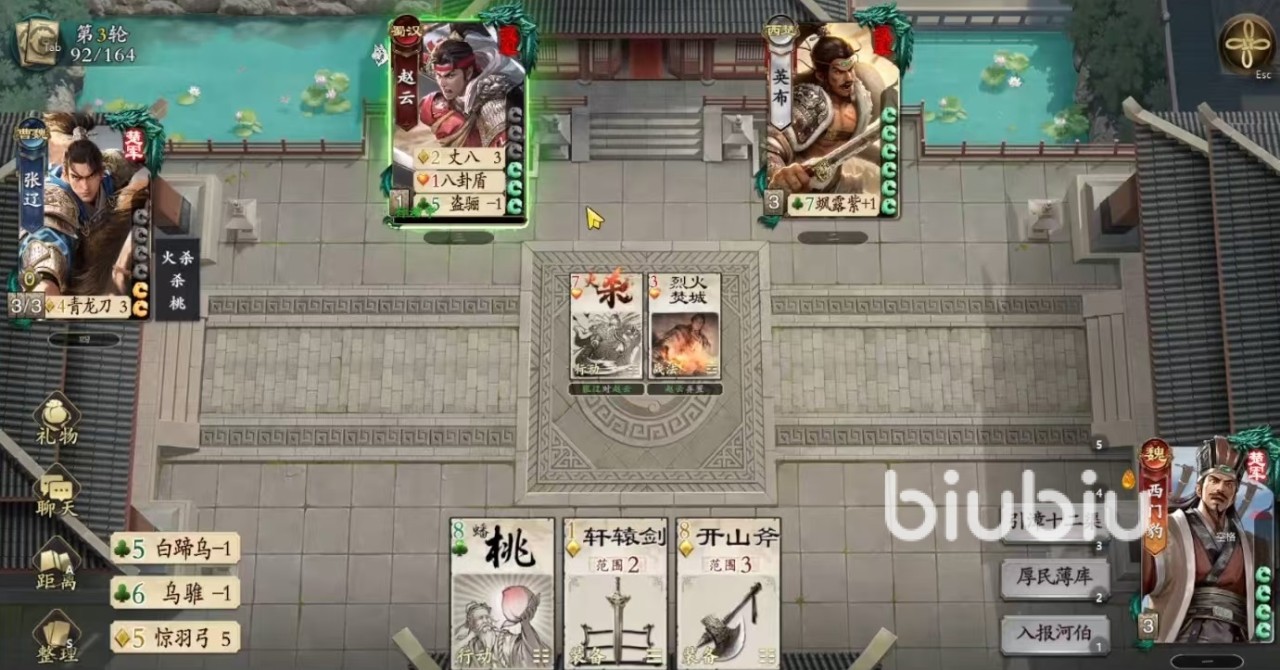 其限定技“入报河伯”则构成闭环关键:可将当前场上所有角色的手牌、装备区及弃牌堆内的全部黑桃牌洗回牌堆。该效果不仅有效回收己方前期散出的黑桃资源,更能干扰对手对黑桃牌的长期规划,尤其克制依赖黑桃花色发动技能的敌方武将。三技能之间存在严密协同关系:“引漳十二渠”持续产出黑桃并探查信息,“厚民薄库”转化花色资源扩大影响,“入报河伯”完成全局重置,共同支撑起西门豹作为节奏型辅助兼中继型控场者的独特定位。