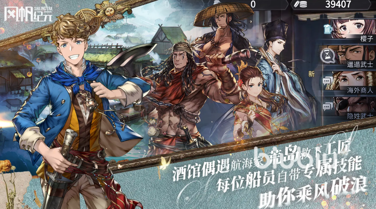 建造与制造向核心角色,聚焦船舶工程与产业经营:造船过程获得的历练值提升;支持自由改装船只舱室结构;工业制品交易利润提高。出身日本传统造船世家,家族以精湛木作工艺闻名。面对西方商船冲击导致本土造船业式微,家族地位岌岌可危。为保全宗族,他潜心研习祖传技艺,联合长崎地方大名争取庇护,并主动接触西方传教士,搜集先进造船资料,立志远航寻访稀缺船材,融合东西方技术重振家业。