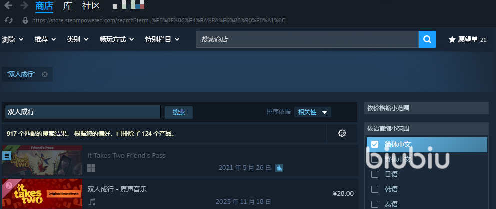 2025年12月23日 17:14 来源:月骑大派拉斯双人成行史低多少钱?如果大家平时喜欢玩双人游戏,那么双人成行想必不少小伙伴都了解过,这是一款广受好评的作品,拥有十分丰富的玩法,创新的合作内容,以及十分温暖的叙事类型,让很多小伙伴都忍不住体验。那想要购买该作品最低需要花多少钱呢?本期小编就给大家带来分享。