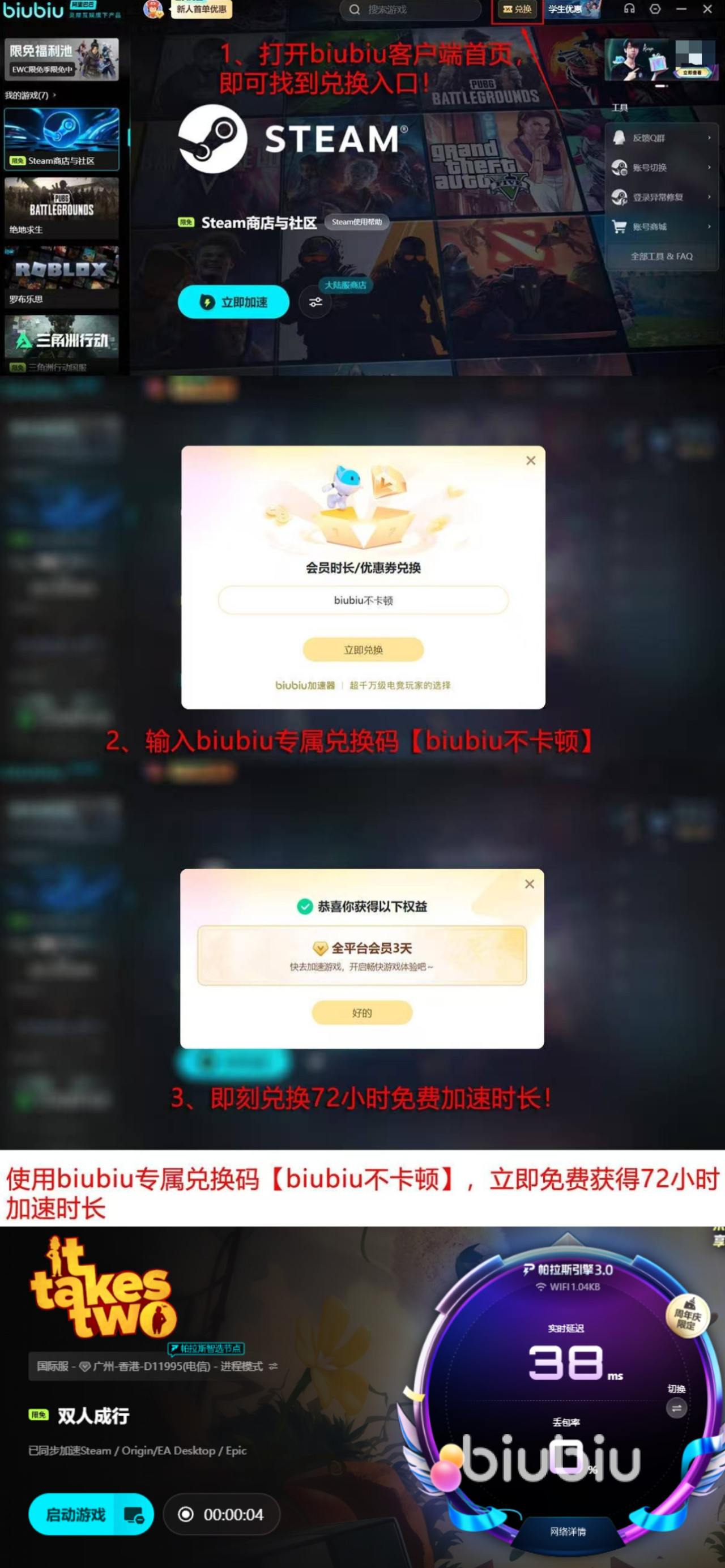 若是大家觉得不错,不妨亲自感受一番,新用户也无需担心,现在下载登录就有24小时体验福利,若是觉得体验不够,那么还可享受平台给所有用户带来的三天体验,只需要用【biubiu不卡顿】即可轻松在指定区域领取该福利。
